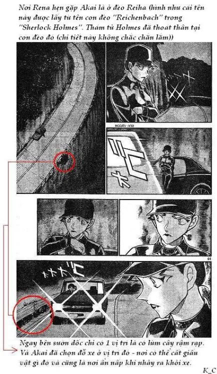 - Tại đèo Reiha, Akai đã bị Rena bắn chết trước sự theo dõi sát sao của Gin & Vodka.
