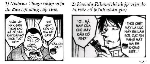 Trong 3 người đó thì có 2 người cầm vào điện thoại của Conan: Nishiya Chigo, Kusuda Rikumichi (còn ông già Shikicho Taro thì sợ điện thoại nên không cầm vào).