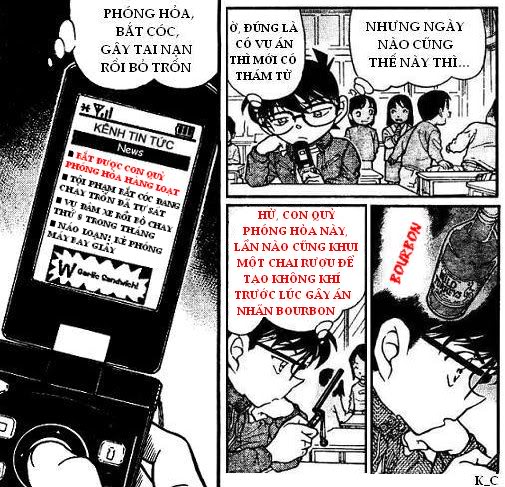 Khi đọc cái chi tiết này: "Hỏa hoạn" & "Bourbon", có thể là nó chẳng có ý nghĩa gì quan trọng nhưng tự nhiên mình liên tưởng đến việc Bourbon là ngài đội trưởng cảnh sát Yuminaga chuyên điều tra các vụ cháy.